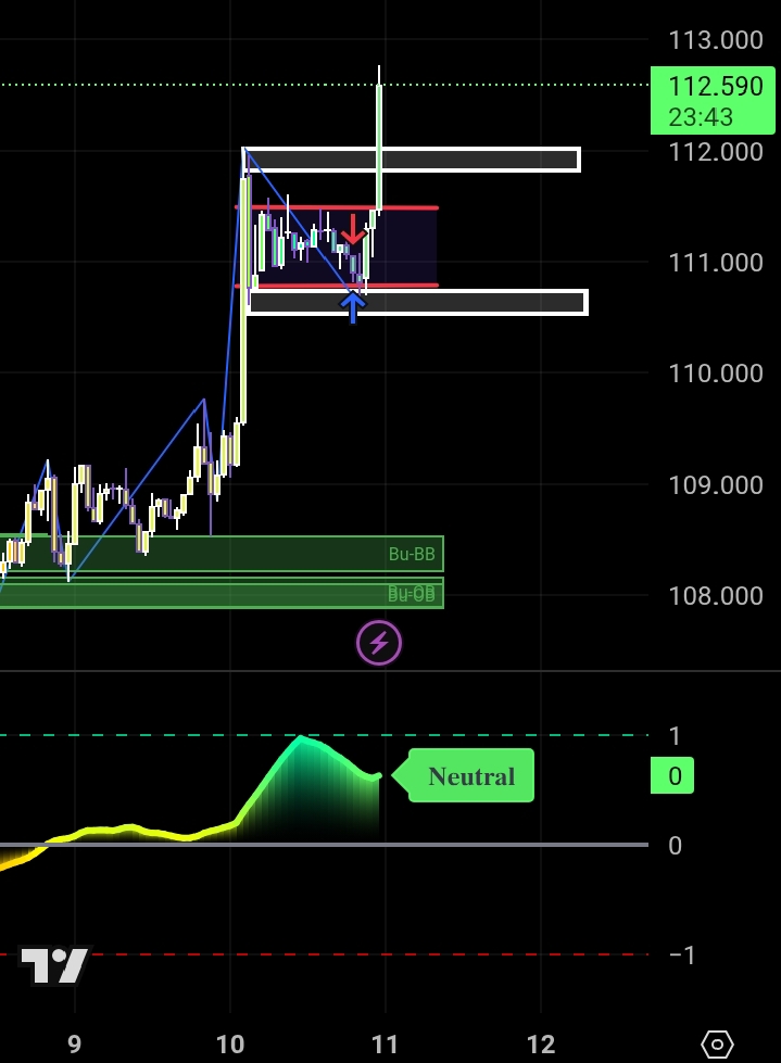 Harga mantul sempurna dari support sebelum terbang (validasi struktur). - 3. Order Block (Bu-OB & Bu-BB) di bawah = buyer aktif: