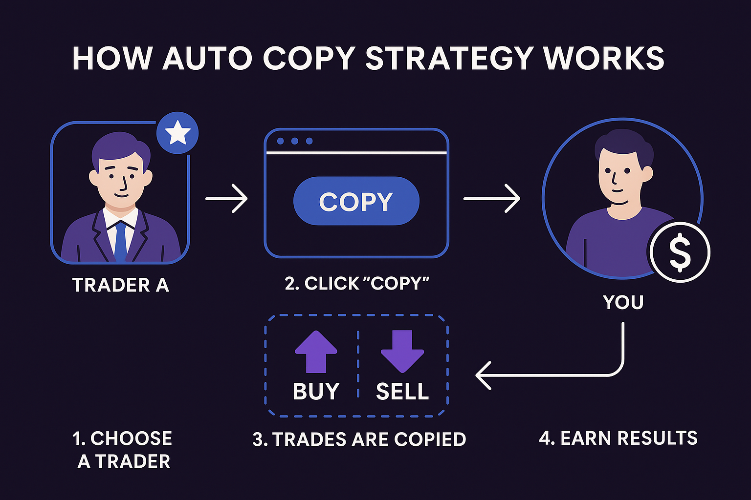 Auto Copy Strategy (ACS) adalah sistem otomatis di mana trader pemula bisa menyalin transaksi trader profesional secara real-time. Artinya, setiap kali trader yang kamu ikuti melakukan BUY atau SELL, akunmu akan melakukan hal yang sama secara otomatis.