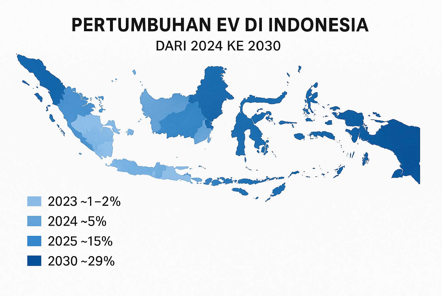 - 2030 (~29%): Indonesia memasuki era elektrifikasi transportasi.